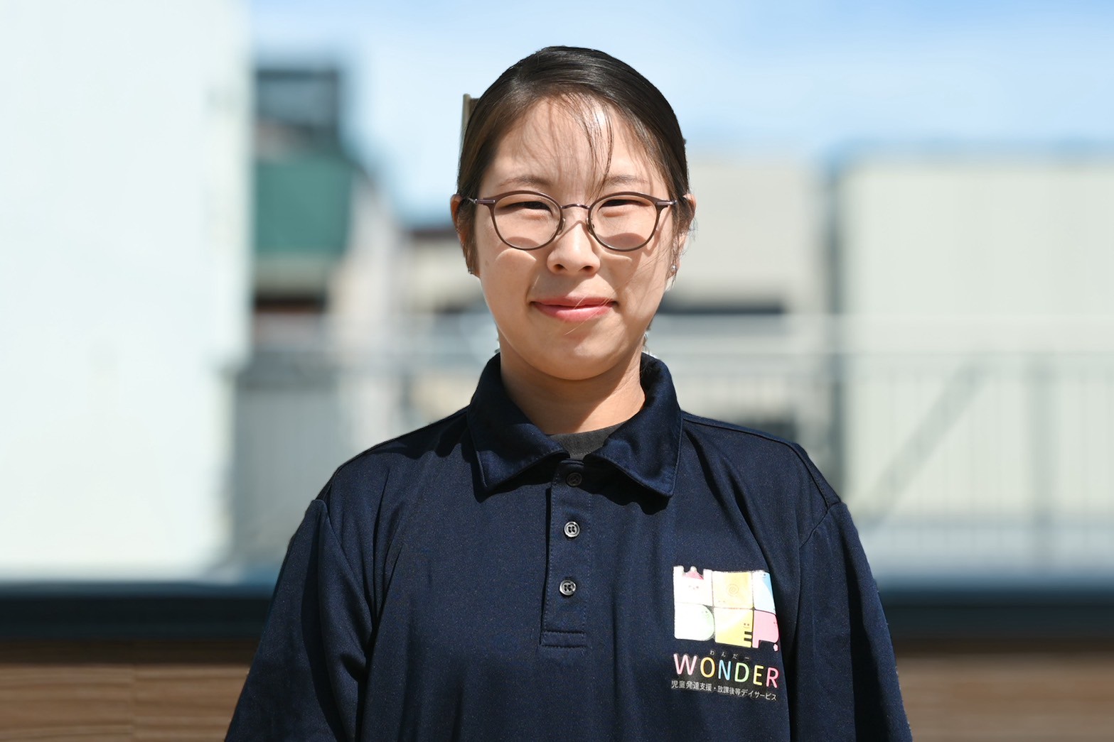 喀痰吸引資格児童指導員として働き始めて、約5年になります。 子ども達に優しく寄り添いながら支援を行なっていきたいと思っています。 将来の自立に向けてしっかりと頑張るところは頑張ってもらいながらも、 遊びも大事にしつつ楽しく過ごしてもらい、 わんだーが子ども達にとって居心地の良い笑顔の溢れる場所になるよう努めてまいります。
