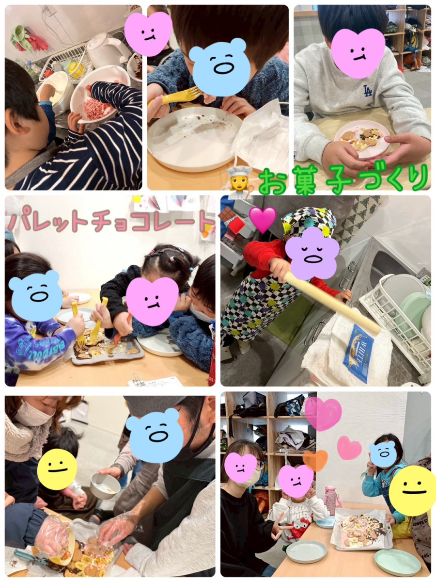 2月8日(日)は、ミルク・ホワイト・ストロベリーチョコを使って「パレットチョコレート」作りを行いました🍫🩷