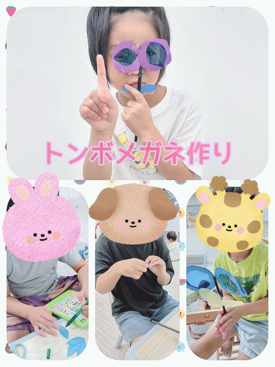 みんなで完成したトンボメガネを見せ合いっこしてました。