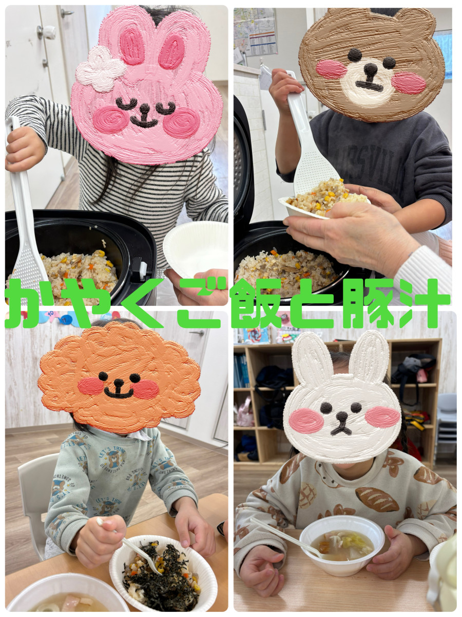 かやくご飯が炊けてくると、「いいにおい〜」と笑顔でお話ししていました☺️