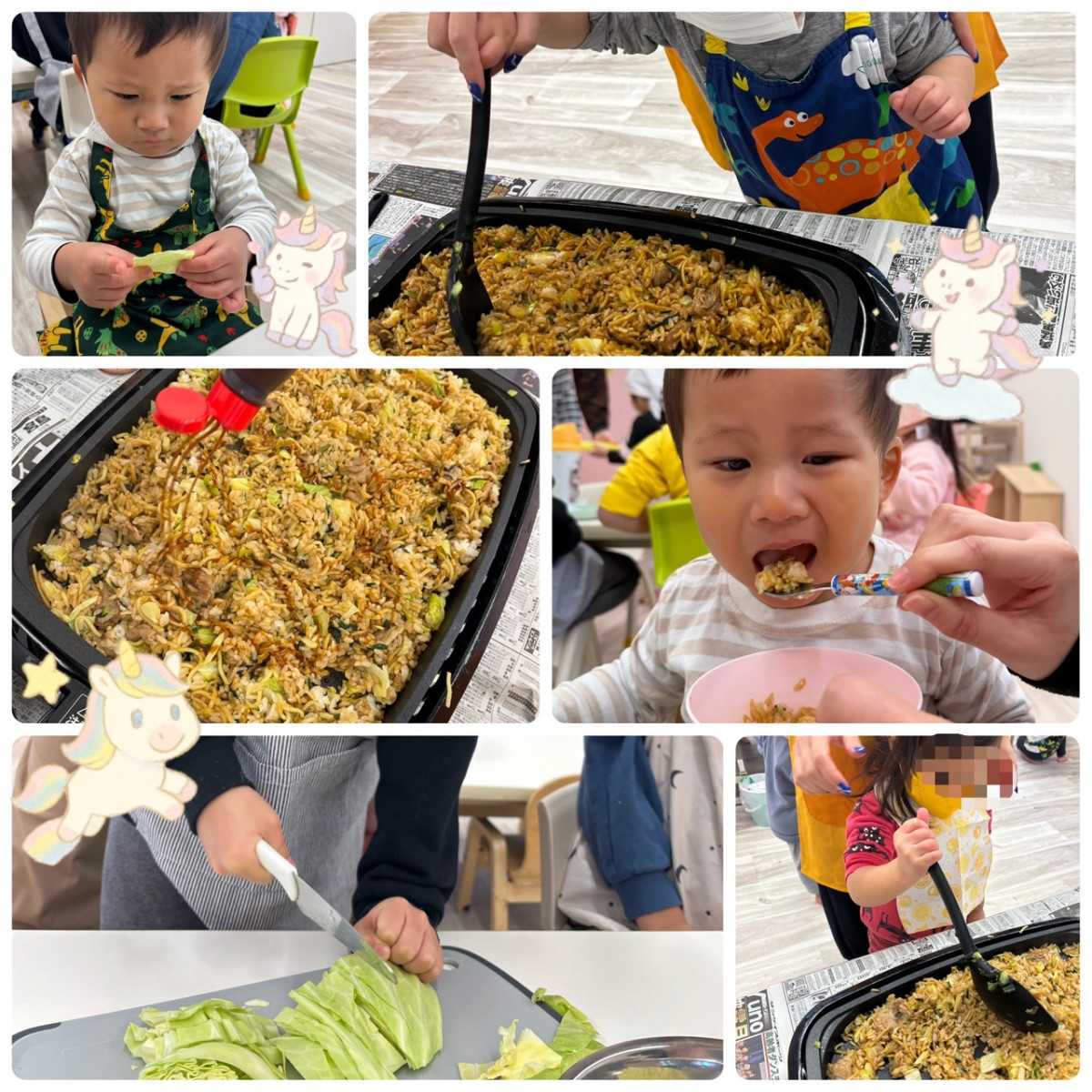 キャベツを切ったり、ちぎったり、炒めたり…それぞれの年齢に合わせてできることをチャレンジしました!