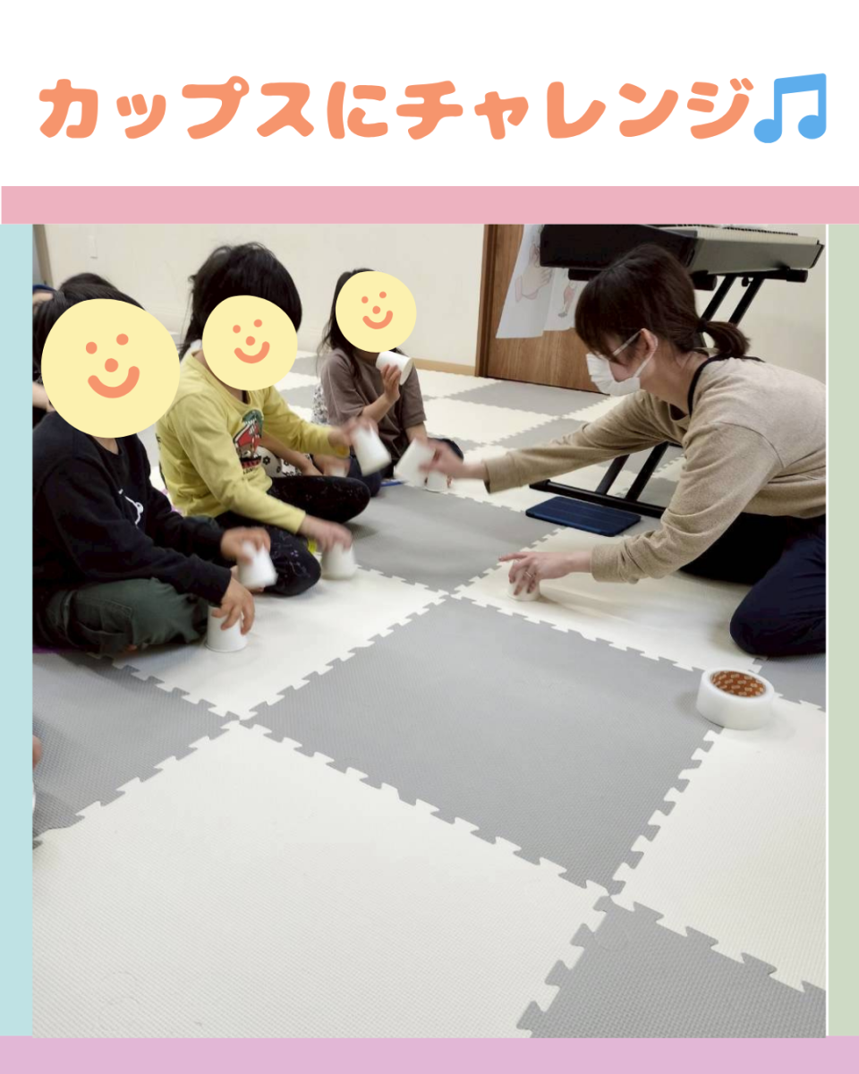 「さんぽ」のリズムに合わせてカップスにチャレンジ♪