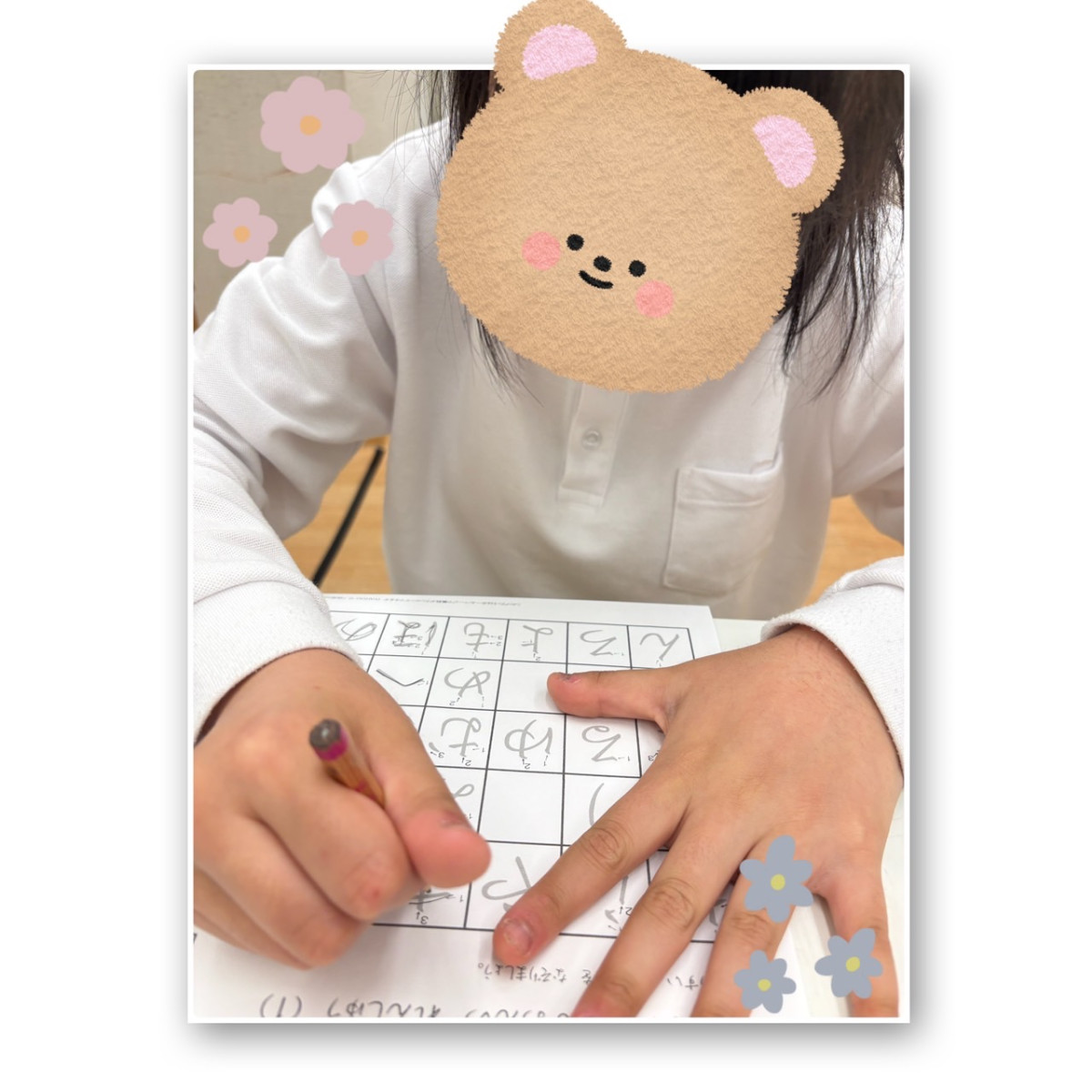 最初はあいうえお順に点つなぎをしていたのですが、少し苦戦していたので、まずはひらがなのなぞり書きプリントをしました✏️